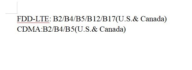 FDD-LTE: B2/B4/B5/B12/B17(U.S.& Canada)